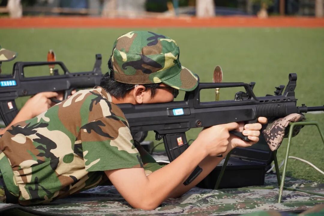 “一、二、三、四——”铿锵有力的口号声划破清晨的宁静。训练场上,一个个方阵整齐排列,同学们目光如炬,身姿如松。站军姿时纹丝不动,任凭汗水顺着额角滑落;踢正步时步伐铿锵,脚掌落地声声坚实;摆臂练习整齐划一,每一次挥动都带着破风的气势。到了射击打靶环节,学员们更是精神抖擞,双手紧握枪身、双眼紧盯靶心,随着教官“射击”指令落下,枪声清脆响亮,每一次扣动扳机都凝聚着专注与力量,尽显少年朝气。