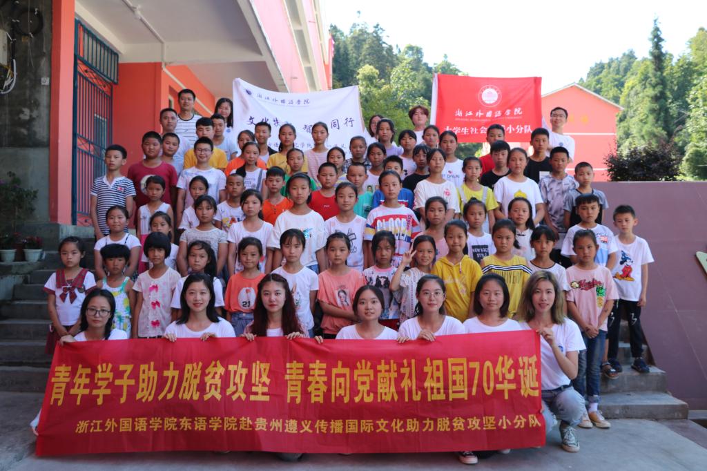大三暑假,在老师的启发和指导下我组织了“传播国际文化,助力脱贫攻坚”暑期社会实践活动,我们一行11人去到偏远地区为当地留守儿童送去国际文化理解课程,了解当地的教育现状,真切地感受到教育扶贫的重要性,也体会到将自己所学分享于他人的幸福,这更让我明白了付出的快乐以及我们新青年身上所肩负的重任。我们的实践地点位于时代楷模杜富国的家乡─贵州省遵义市湄潭县兴隆镇,我和队员们有幸拜访了熟知英雄事迹的副镇长,聆听了杜富国的英雄事迹,了解到英雄的成长经历和参军期间对人民的质朴感情,杜富国“你退后,让我来”的壮举和他特殊的军礼深深感染了我们所有人,这也更激发了我们对英雄的无限崇敬,激励我们在生活中要学会付出。