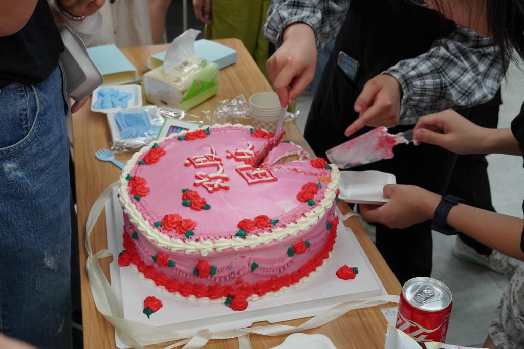 活动最后,同学们和老师一起切蛋糕,为祖国母亲庆生。跨越专业与年级,同学们围坐在一起聊着天,分享美味和快乐。2021年555电影