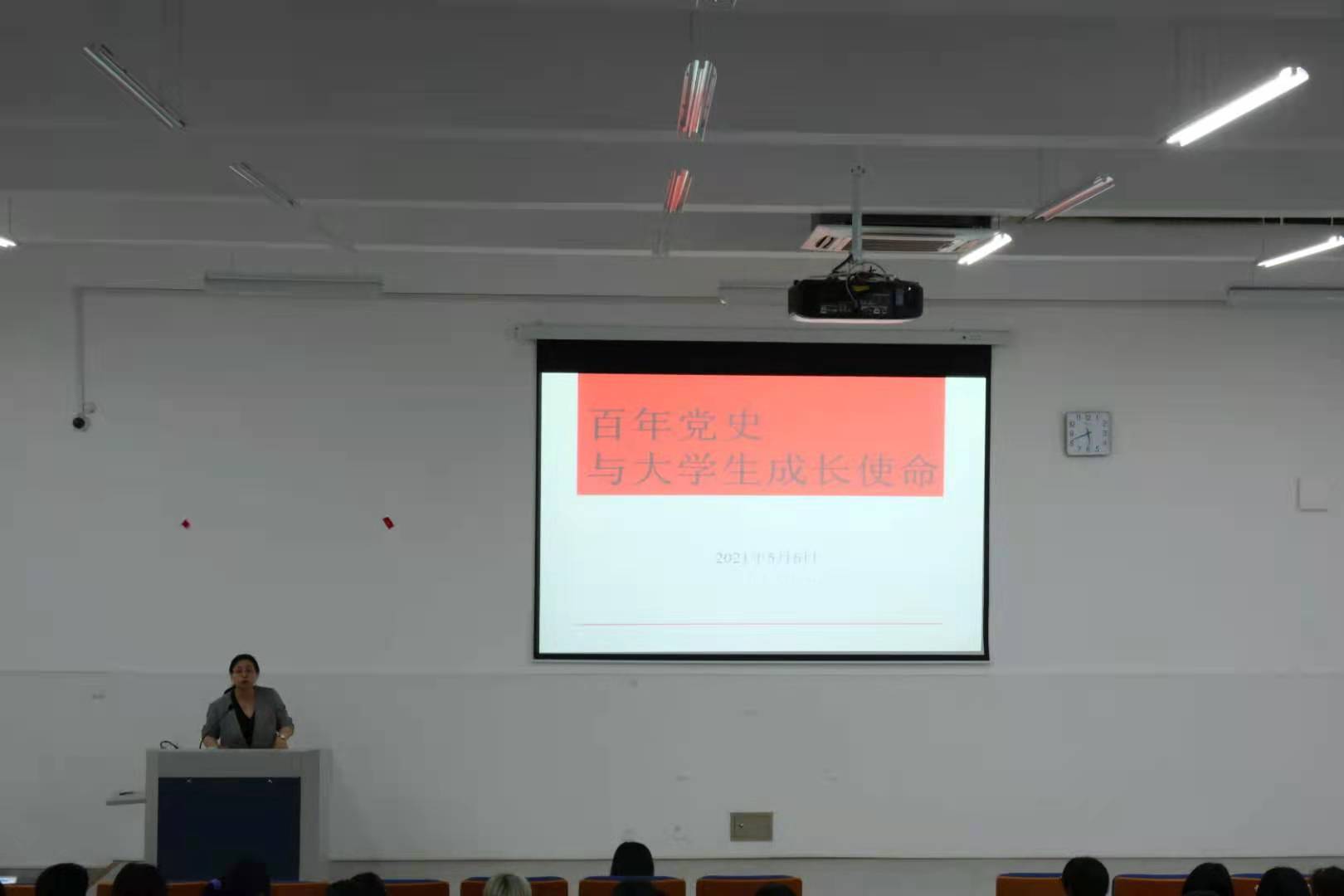方老师向同学们简述了中国共产党的百年发展历程,党的历史是一部不断探索的历史,在曲折中前进,是主旋律。同时也强调了大学生成长成才与党的建设伟大事业的关系,党的发展需要大学生,大学生的成长成才更离不开党的正确领导。习近平总书记对新时代中国青年提出了“六点要求”,指明了新时代中国青年的历史使命,即“树立远大理想”“热爱伟大祖国”“担当时代责任”“勇于砥砺奋斗”“练就过硬本领”“锤炼品德修为”。
