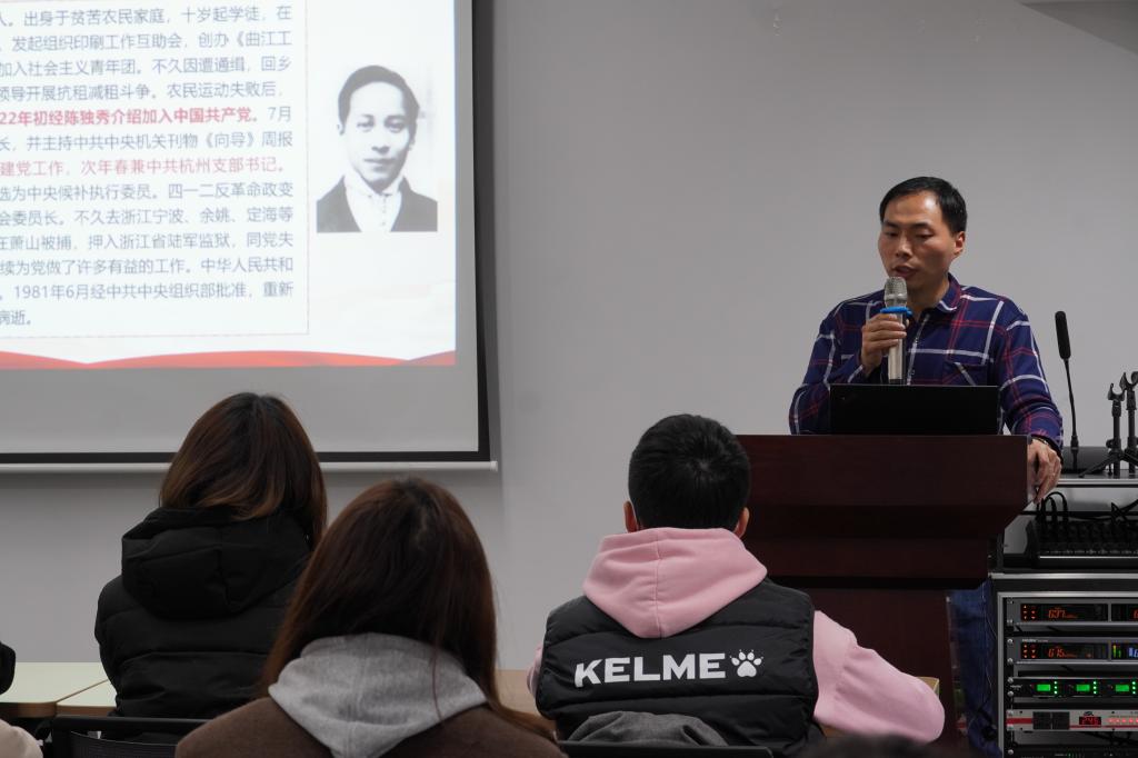 参观结束后,杭州青年运动史馆的黄官飞老师就青年学党史的意义、浙江第一个党组织的诞生、党代表人民取得的巨大成就、学习党史的启示,为大家上了一堂生动而丰富的党史教育课,黄老师希望同学们能够做到习近平总书记强调的“学史明理、学史增信、学史崇德、学史力行”,在新的征程里不忘初心、牢记使命,砥砺前行。