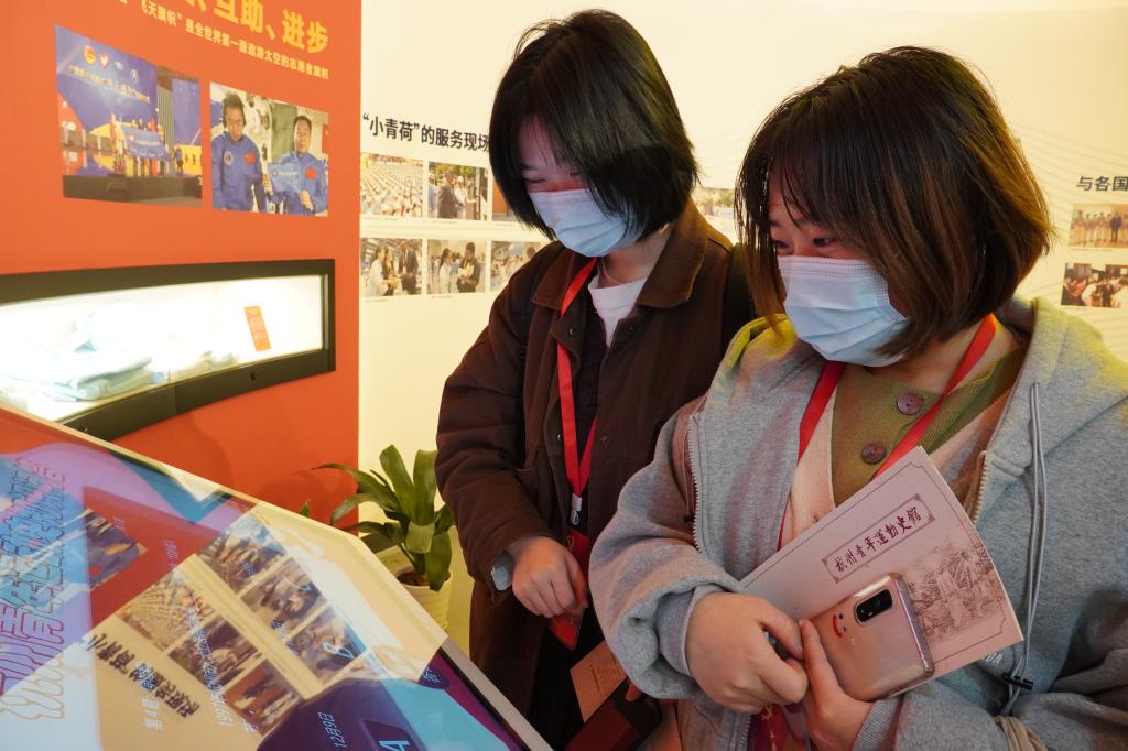 在学生第一党支部书记杜茜老师、第二党支部书记郑周璇老师,辅导员张志华老师的带领下,大家跟随讲解员沿着“杭州青年为建设新中国而奋斗”“杭州青年积极参加社会主义建设”“杭州青年在建设中国特色社会主义中建功立业”的篇章轨迹,体会革命的艰辛和先烈坚定的理想信念,感受杭州青年在中国共产党领导下投身革命、建设和改革的蓬勃热情。馆内210余件展品将同学们带回过去的杭州,从斑驳生锈中看过去人们寄情于物的信念,感悟胜利的来之不易。看到展览墙上布满浙外“小青荷”志愿者的照片,同学们感受到了身为浙外学子的骄傲和认同感,学习以往浙外学子的志愿服务精神,将个人融入到时代中去,紧跟党的步伐。