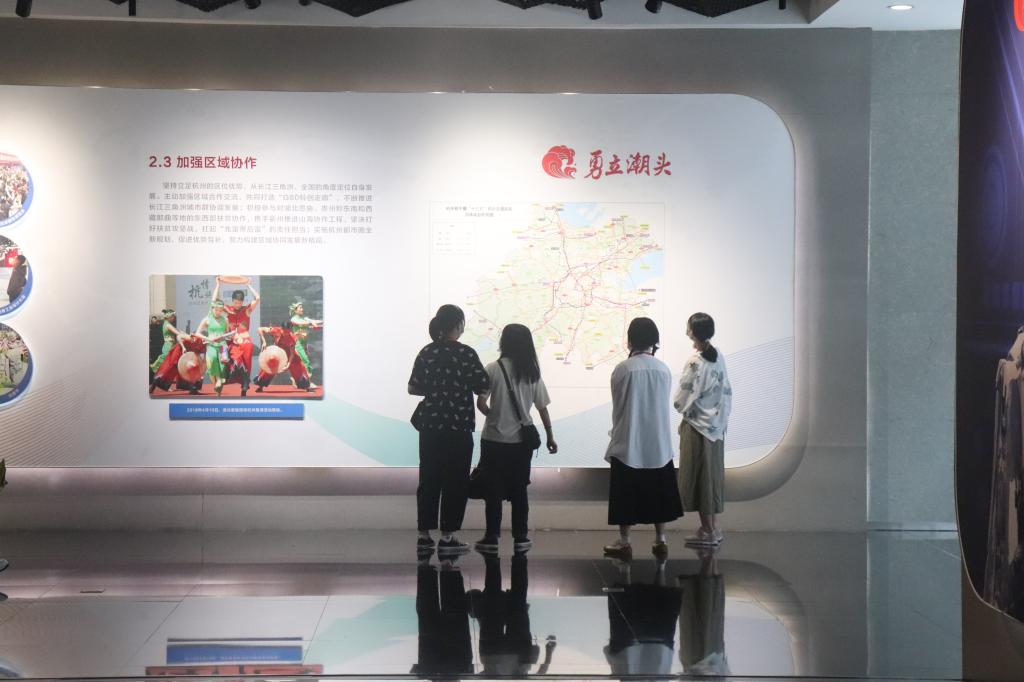 组织学生党员、入党积极分子、团学干部赴杭州市城市规划展览馆开展“在路上,学党史”活动,在学生第二党支部书记郑周璇老师带领下,回望杭州在时代发展中的山河巨变,追忆在时光流转中熠熠生辉的时刻和节点。