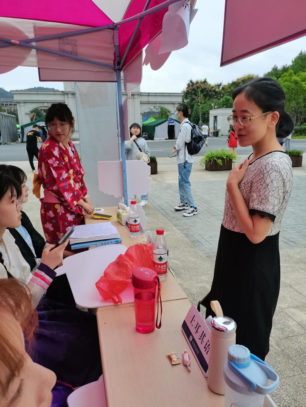 随着新生们的到来,班助们耐心地为新生讲解报道的顺序,和迎新志愿者们一起引领新生一步步正式成为浙外的一员。他们身着日语、阿拉伯语、韩语、土耳其语的特色民族服饰,活泼有趣,好似专业“吉祥物”,代表着学院的四个语种,给新生们留下了所学专业的初印象。