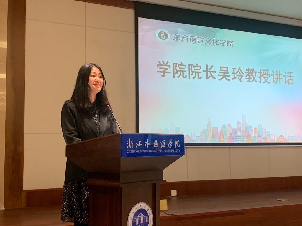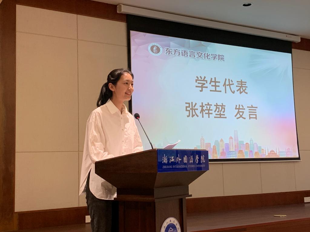 学生代表20级土耳其语班张梓堃,以自己作为浙外2020级学生的1/2200、555电影 2020级学生的1/170、土语专业学生的1/26、导师制结对学生的1/51,结合每一次选择的初衷、感悟,讲述了她心中的“浙外梦”,并代表首批参与“导师工作室”的学生郑重承诺:积极主动、虚心求教、钻研努力,认真听取导师的指引教导,为成为“更好的自己”而勇毅前行。