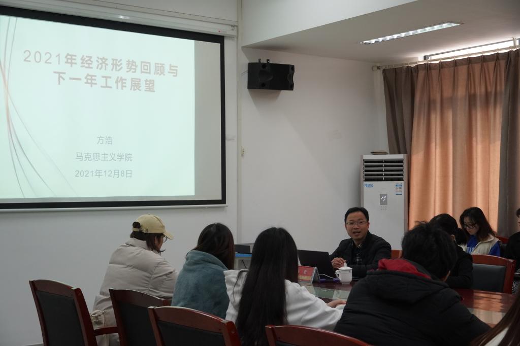 做“经济发展形势回顾与展望”党课。讲座由学院党总支书记夏颐老师主持,30余名党员师生、入党积极分子在现场聆听党课。